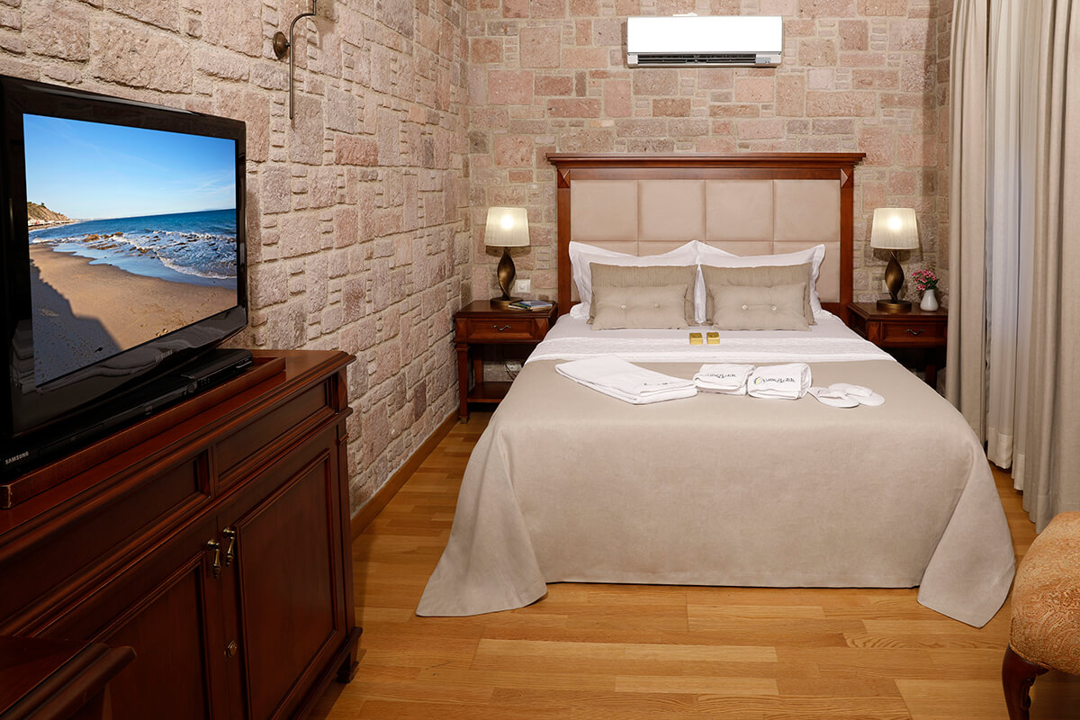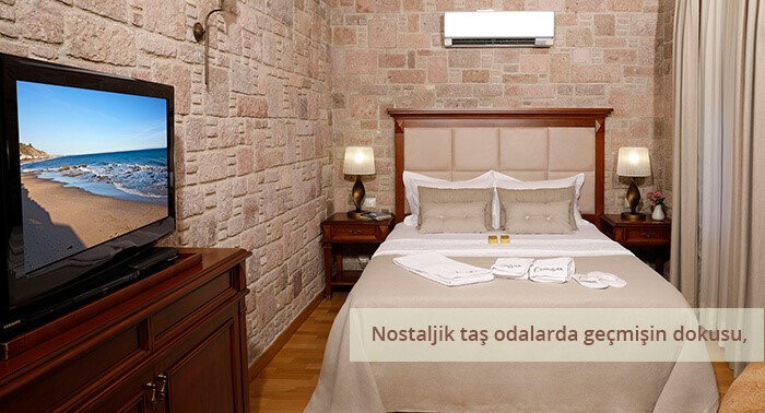 YundAntik Cunda Konakları, Deluxe, Standart ve Taş Odaları ile otantik mimariyi modern konforla birleştiriyor.